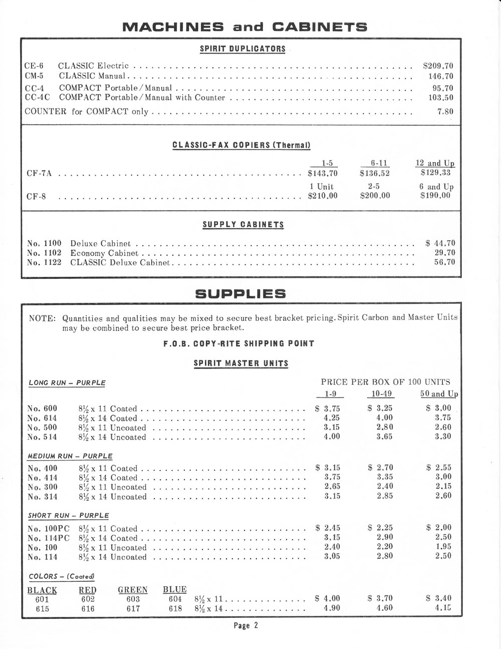 Copy-Rite 1968 Confidential Dealer's Cost List