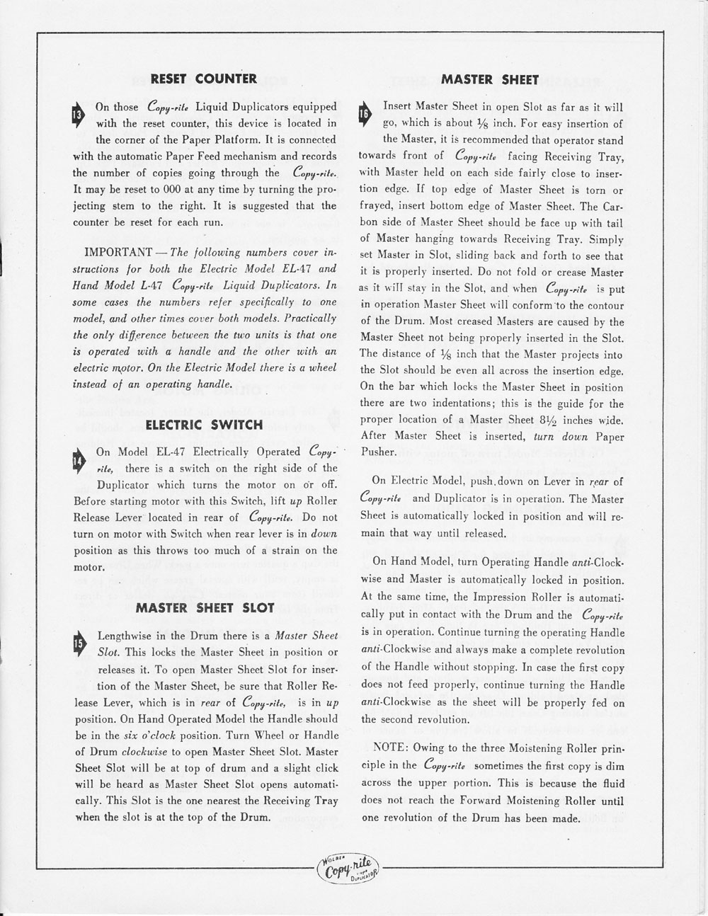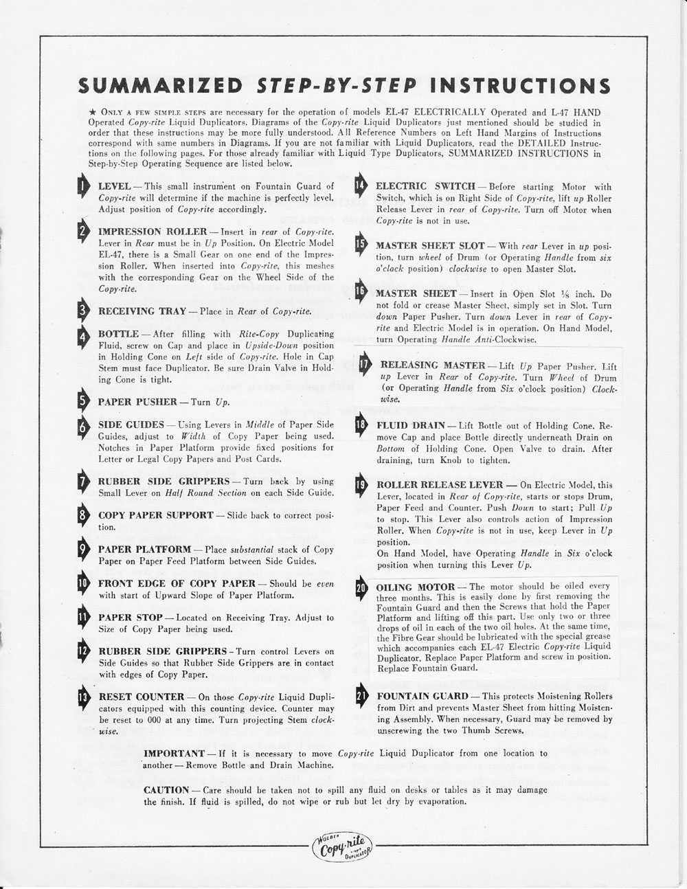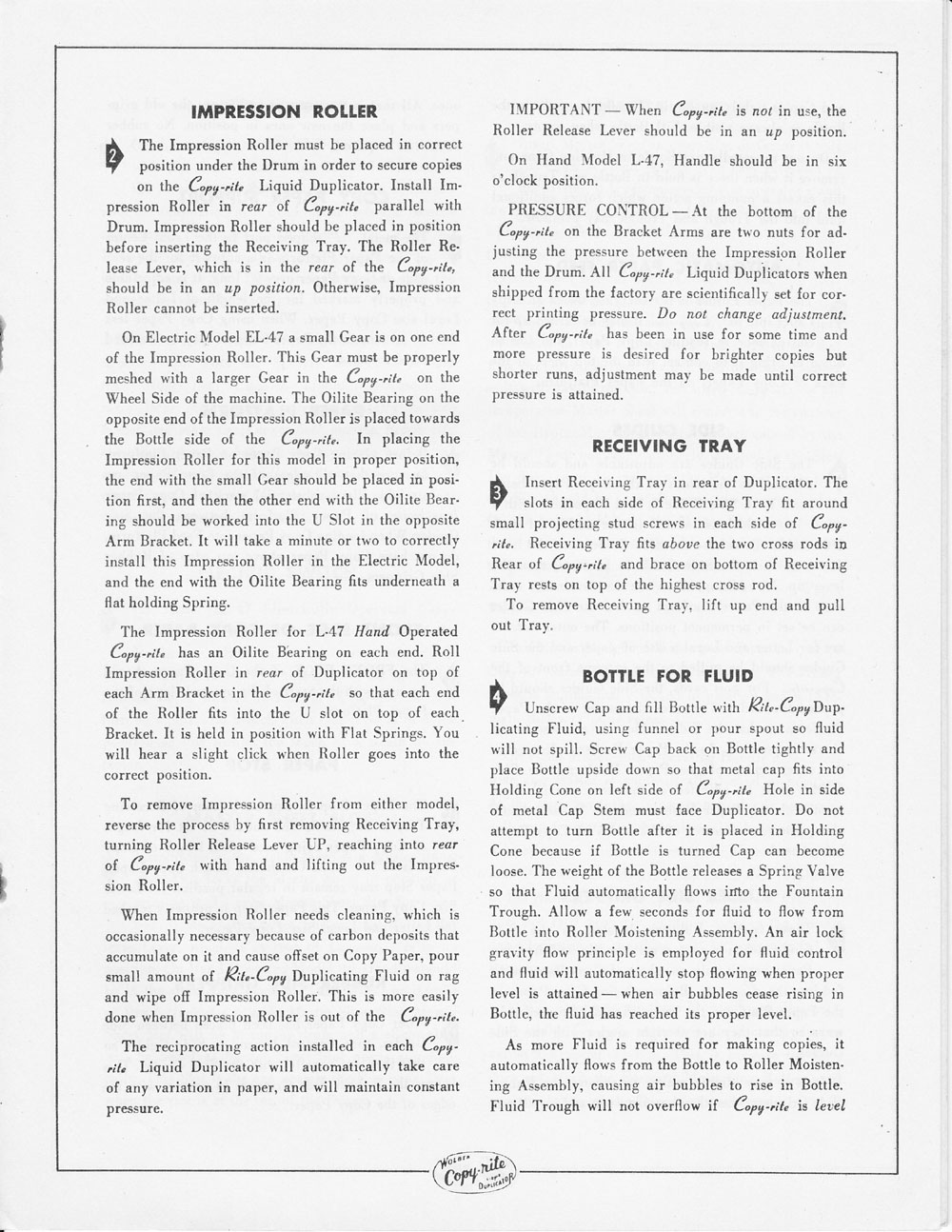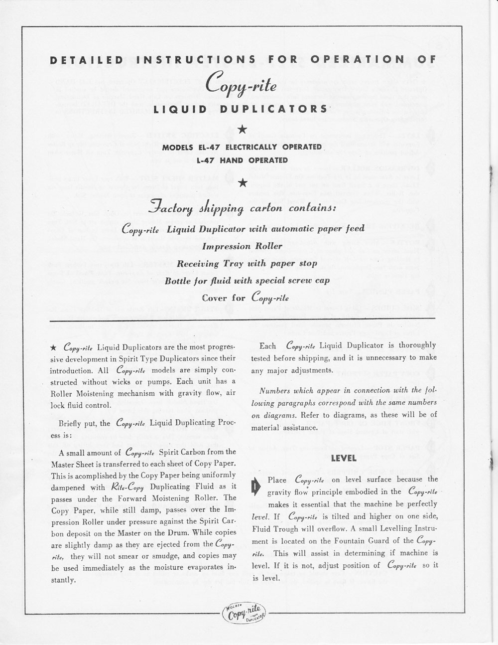 Copy-Rite EL47 & L47 Liquid Duplicator Operating Manual
