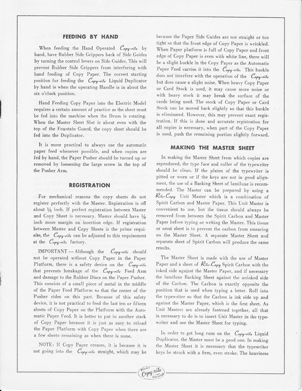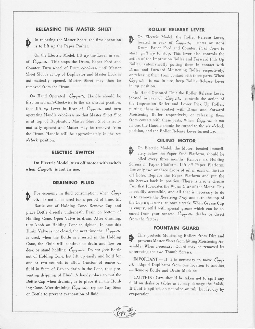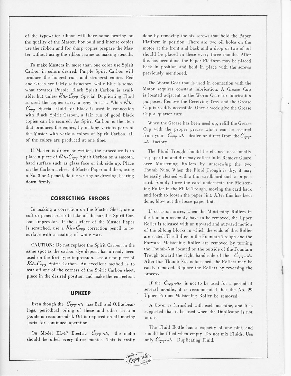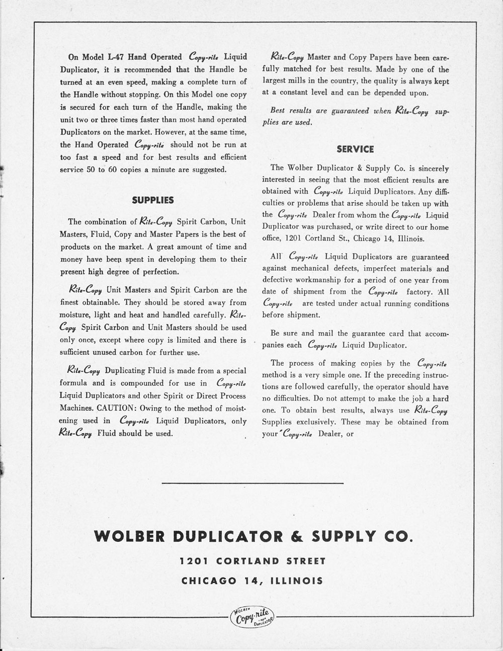 Copy-Rite EL47 & L47 Liquid Duplicator Operating Manual