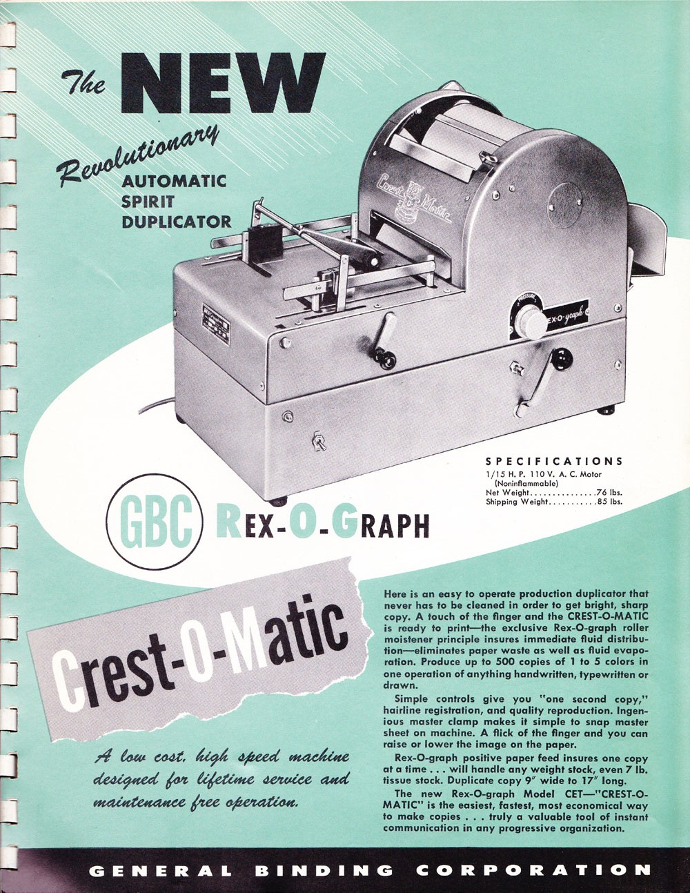 Spirit Duplicators, Stencil Mimeographs, Ditto Machines - these were the personal copying technology of the 20th Century, at least until wet and dry photocopiers became cheap. Maybe you recall the distinct smell of mimeo ink from the still-damp purple-stained test sheets that you got from your teachers in grade school? If so, or better still, if you are a fan of this old technology and have a machine that you want to get running again, then perhaps you will find this collection of documents of value. I don't normally deal in Ditto/Mimeo documentation, but I do occasionally acquire some in the pursuit of the Operation O.O.P.R.A.P. Project, and these I'll scan and offer here for the edification of whoever finds it useful. Currently, I have documentation available for Speed-O-Print, Copy-Rite and Rex-O-Graph duplicators.